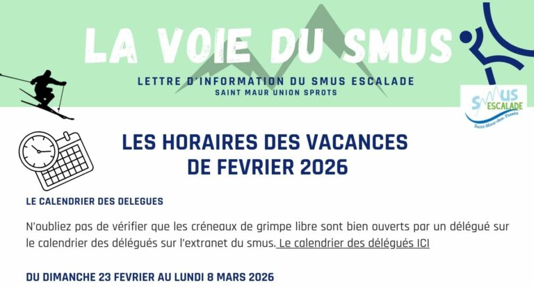 Vous pouvez voir les créneau de grimpe disponibles sur l’extranet du SMUS Escalade.
