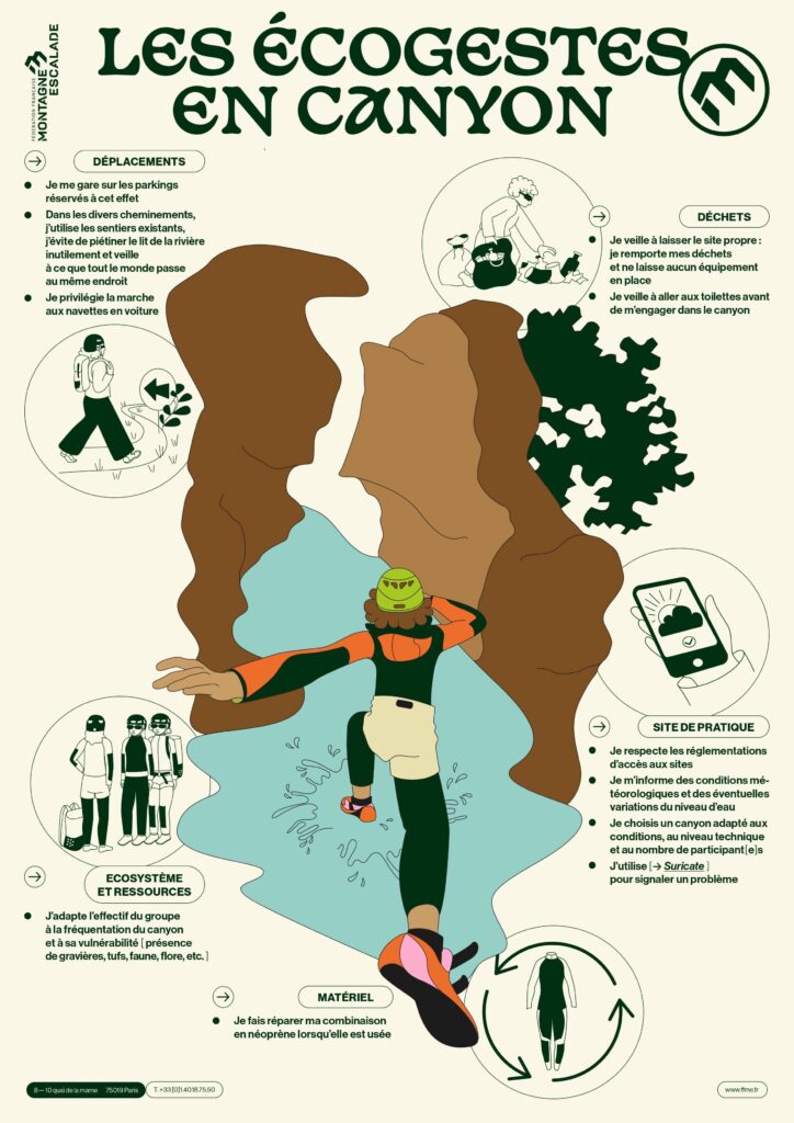 - Zéro trace: emporter tous ses déchets, maîtriser l’usage de la magnésie, partager les voies dans un esprit d’entraide et privilégier le covoiturage.