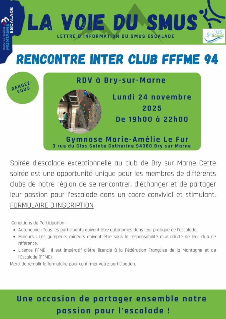 Autres articles Rencontres interclubINTER CLUB Bry sur Marne lundi 24 novembre Victoire Bastardie • 6 novembre 2025