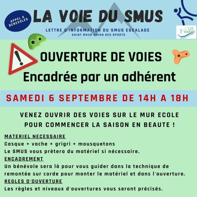 Appel à bénévoles ÉvènementsOuverture de voies samedi 6 sept de 14h à 18h salle Brossolette Victoire Bastardie • 31 août 2025